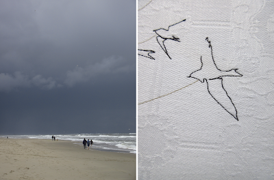 We hebben nog geen verwarming in ons nieuwe huis. Om op te warmen doe ik een strandwandeling in de regen. Terug thuis zin in cake. Komt goed uit, want er staat al een tijdje een soort van kant-en-klare mix te wachten om cake te worden. Extra appel, dadel, chocolade, pruimen kaneel en koekkruiden toegevoegd. Heerlijk herfstig. Voldaan en een lichaam die weer warm loopt mijn atelier weer in.